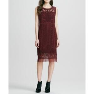 Catherine Malandrino Favorites Embroidered Mesh Lace Sheath Dress Burgundy Sz 2