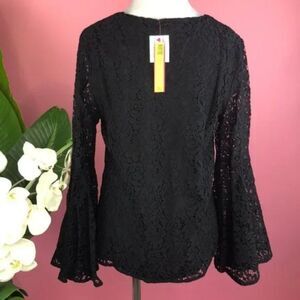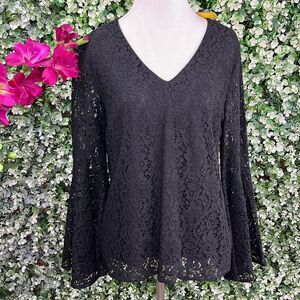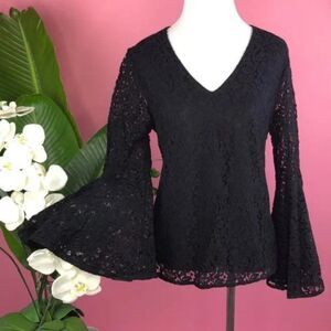 Catherine Malandrino Flare Sleeve Black Lace Top NWT