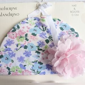Catherine Malandrino Floral Hat and Bootie set 0-12M New