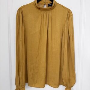đź’›Catherine Malandrino Gold Pleated Blouse with Mandarin Collar