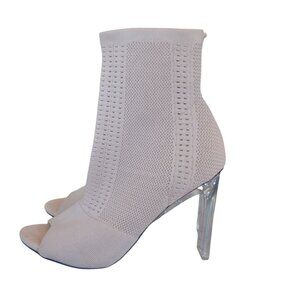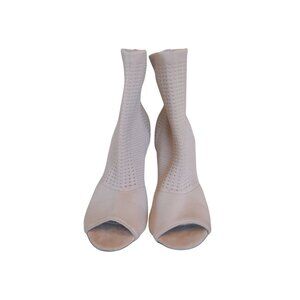 Catherine Malandrino Knitty Sock High Heel Open Toe Boots Size 8.5 Beige Neutral