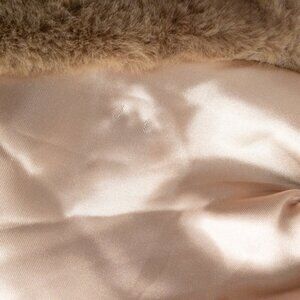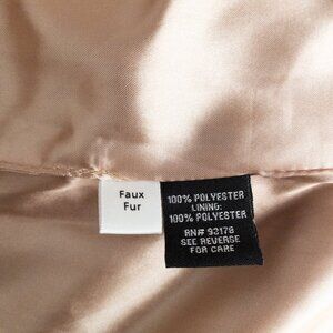 Gently pre-loved with minimal wear. Interior satin lining shows a few faint pulled threads (see close-up) but nothing visible when worn. Faux fur exterior is in excellent condition with no matting or damage.