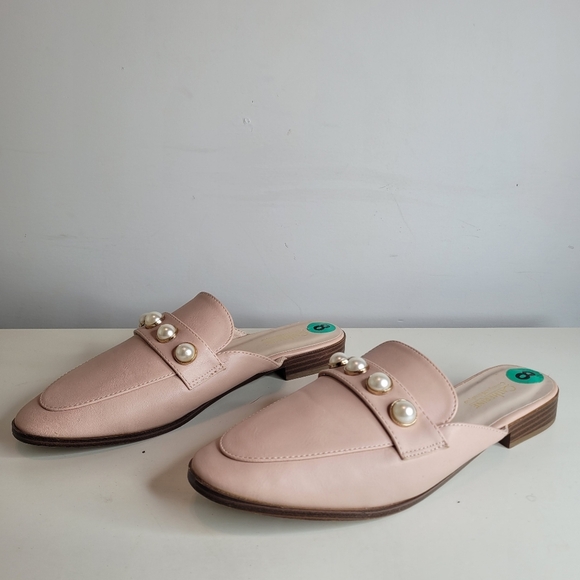Catherine Malandrino Quentin Pink Mule with Faux Pearls Slip on Flats Size 8