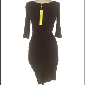 Catherine Malandrino Ruched Knit Dress Black Assymetric Hem Size M