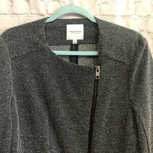 Catherine Malandrino Runway Zipper Moto Jacket This gorgeous Catherine Malandrino Runway Style jacket is defined by a circle neckline, an asymmetrical zip front, zip up slanted hand pockets, & long sleeves. Very flattering seaming, black contrasting zipper. Black, gray, & white marled body, looks like dark gray with specks of white. Cool enough to throw over a tee & jeans.