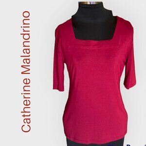 Catherine Malandrino Short Sleeve Square Neck Burgundy Top Medium NWT