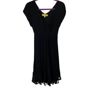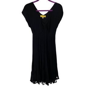 Catherine Malandrino Women Midi Dress Flared V Neck Black Size 4