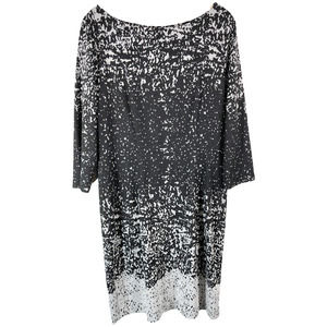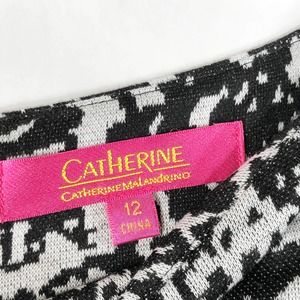 Catherine Malandrino Size 12 Dress Black Gray Shift Knee Length Knit Zip 1384