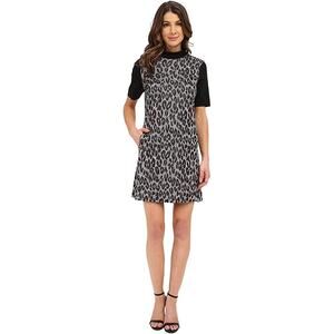Catherine Malandrino Black Gray Leopard Print Midi Dress