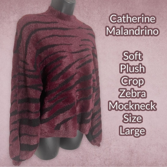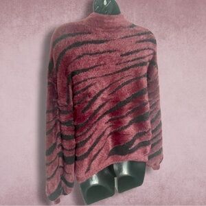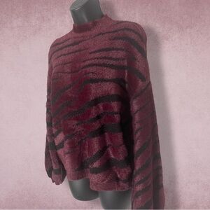 Catherine Malandrino Soft Plush Plum Black Zebra Long Sleeve Top Size Large