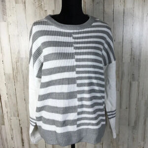 Catherine Malandrino brand Stripe Colorblock Long Sleeve Sweater Pullover Knit, size large L
