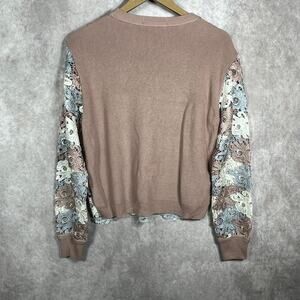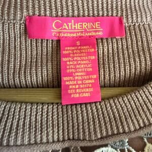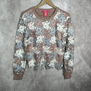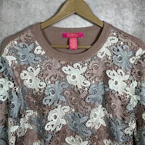 Catherine Malandrino Sweater Womens Small Brown Floral Lace Knit Crew Neck