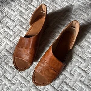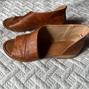 Chic tan leather sandals by Catherine Malandrino. Open-toe design with a comfortable fit. Ideal for casual outings.