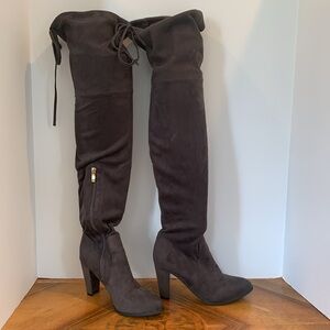 Catherine Malandrino Tie Back Over The Knee Boots Gray Faux Suede Women’s Size 7