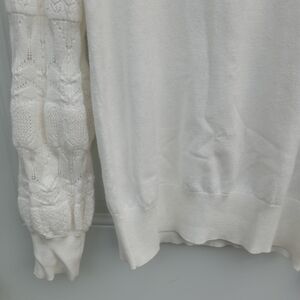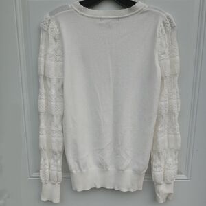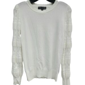 Catherine Malandrino White Knit Sweater w/ Textured Puffy Sleeves Size XS