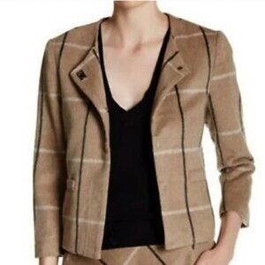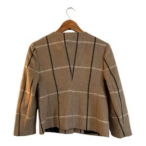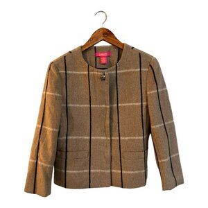Catherine Malandrino Windowpane Grid Blazer Jacket Size 6 Tan Career