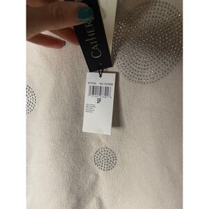 Keywords: Catherine Malandrino, sweater, top, womens, embellished, rhinestone, pale platinum, size S, dolman sleeve, relaxed fit, round neck, casual, party, knitwear