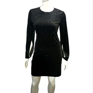 Catherine Malandrino Womens Long Open Sleeve Velvet Dress Black/Silver Size M