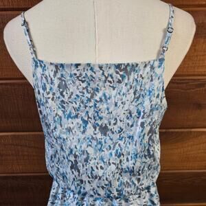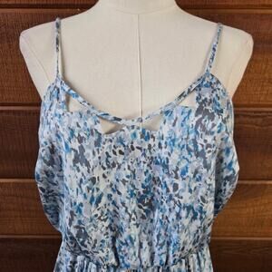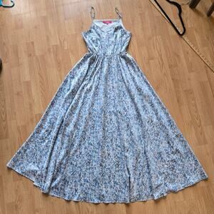Catherine Malandrino dress, size 2 maxi dress, blue printed summer dress, spaghetti strap dress, full length abstract dress, polyester spandex blend dress, resort wear maxi, soft blue print dress, modern elegant dress, scoop neck maxi