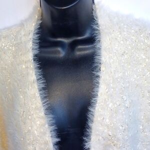Catherine Malandrino Womens XS soft Fuzzy Open Front Cardigan Soft Cream Ivory