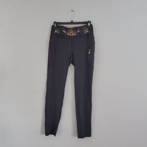 Catherine Malandrino workout leggings with floral cutouts on waistband, zipper pocket on left leg and slit pocket on waistband. These athleisure leggings are in excellent condition (no stains, no rips, or damage and comes from a smoke and pet-free environment).