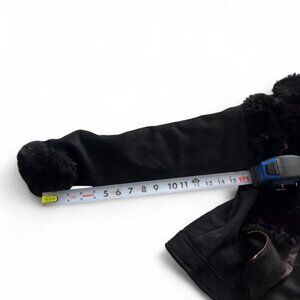 Black suede jacket with faux fur collar and cuffs. Cropped, fitted silhouette. Very early 2000s / Bratz / mcbling vibes. Super flattering and cozy. Fully lined. Size M on tag — might fit more like XS–S (check measurements). 📏 Measurements (inches, laid flat): Pit to pit: 18 Length: 18 Sleeve: 16.5 Great pre-owned condition. Open to offers ✨ #y2k #2000s #grunge #suede #mcbling