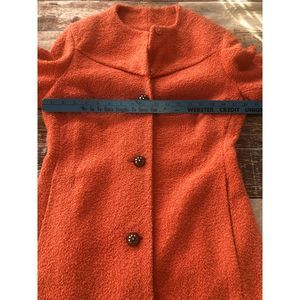 Catherine Malandrino Yellow Label Size 4 Coat. Peach color coat. Stunning jacket with trumpet style sleeves that are slightly shorter in length. Top button is a snap and hidden and then three big silver round buttons down the front. The jacket is lined in 100% silk. Very vintage vibe feel. I purchased this coat in/around 2007 and wore it almost every easter until around 2010. it has been hanging in my closet since- no longer fits. I cannot express how darling this jacket is.
