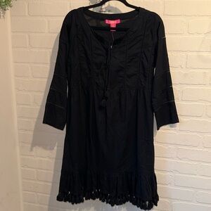 Catherine Malandrino dress black boho peasant tassel front & trim detail cotton