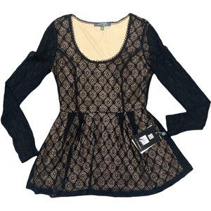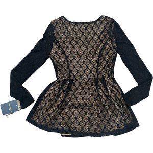 This top is NWT. It features a beautiful black lace layer over a nude base.