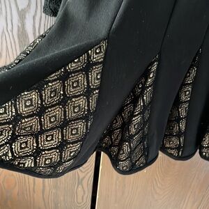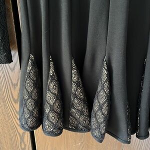 Catherine Malandrino black cocktail long sleeved dress. Size 2. The sleeves are see through lace Nd the bottom cream panels with black lace over them. It gives the dress flare.