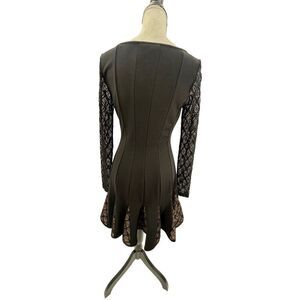 Catherine Malandrino Dress Size 6 Black Lace Panel Fit & Flare Long Sleeve