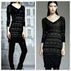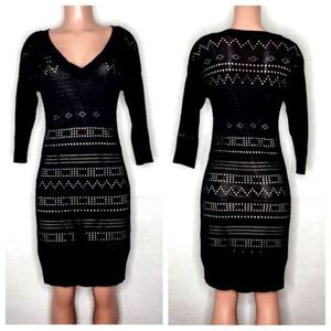 Catherine Malandrino Laser Cut Black Dress Neutral Slip Lining Large