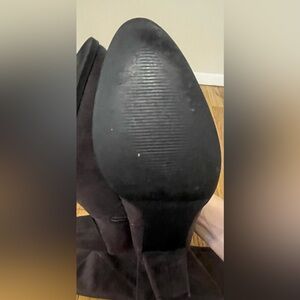 Gorgeous velvet like fabric. In gently used condition. Comes with zipper on the side, tightening straps on top, and 3” heel.
