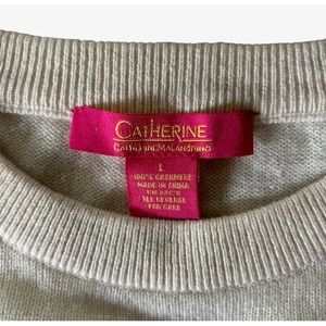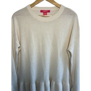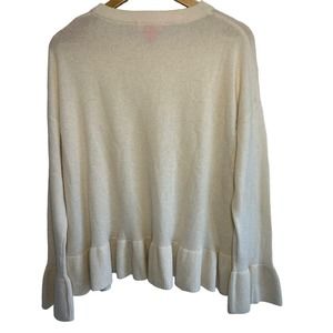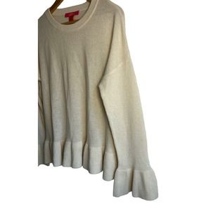 Catherine Malangrino Women’s Size Large 100% Cashmere Bell Cuff Ruffle Hem Sweater Cream