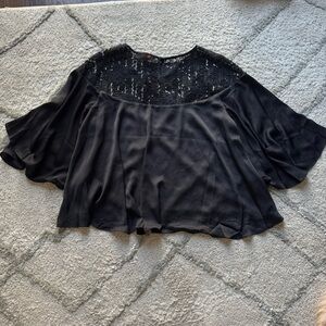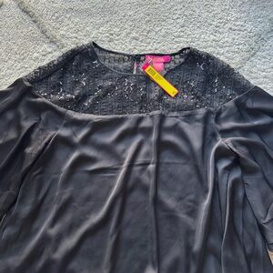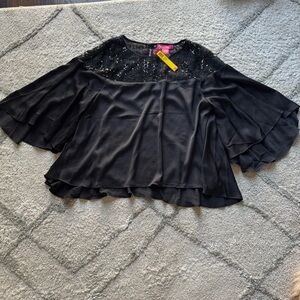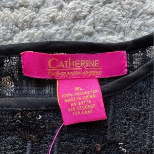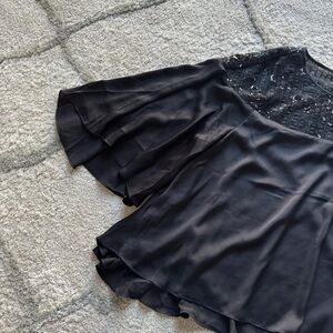Catherine Malendrino Cora black sequin silky top party blouse flutter XL new