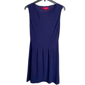 This Catherine Malandrino Knit Fit and Flare Pleated Dress is incredibly drapey and stretchy. The navy blue dress features a solid pattern, sleeveless design, and a round neckline with stitched pleats that are released at waistline to allow for a fitted bodice and free flowing knee-length skirt with a pullover closure. This dress is perfect for various occasions such as travel, parties, casual wear, and business settings. The dress is made of polyester/spandex material and has a knit fabric type. The dress is lined and has a collarless design with stretch and wrinkle-resistant features.