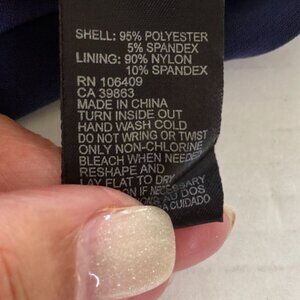 Shell: 95% Polyester/5% Spandex - Lining: 90% Nylon/10% Spandex - Hand Wash