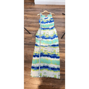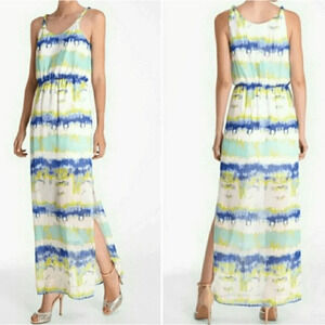 Catherine Melandrino Striped Blue Green Chiffon Tie-Dye Maxi Dress Woman’s M NWT