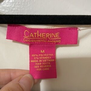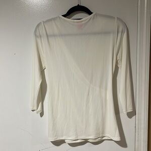 Catherine women's blouse in off-white with three-quarter sleeves. Size Medium. Like new condition with a tiny, barely visible stain.