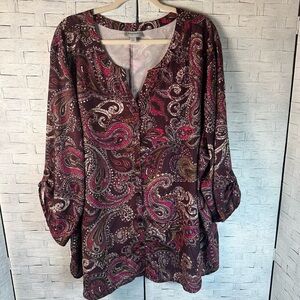 Catherine Paisley tunic blouse colorful satin roll tab sleeve bohemian plus size