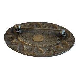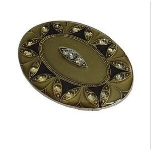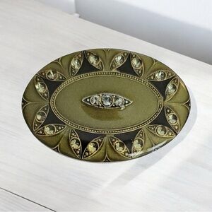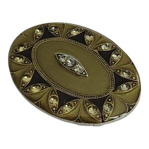 Catherine Popesco Art Deco Style Enamel Clear Rhinestone Oval Brooch,