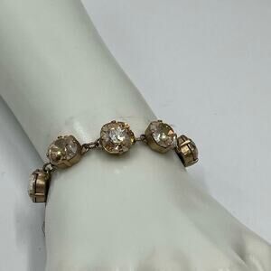 Catherine Popesco France 12mm Champagne Cushion Cut Crystal Goldtone Bracelet