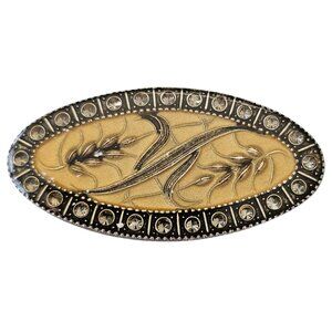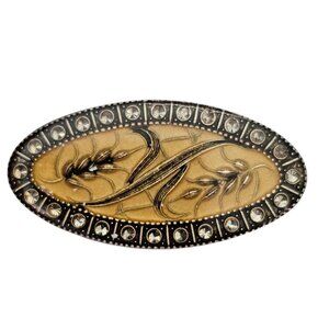 Catherine Popesco Rhinestone Wheat Sheath Oval Resin Brooch Pin Signed, J39