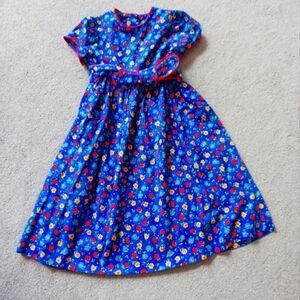 Blue Background with Red, Yellow, and Lighter Blue Flowers