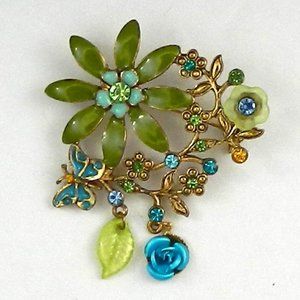 Catherine Stein Designed for Dillard's Flower Brooch Green blue