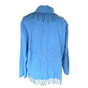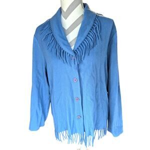 Catherine Stewart for BellPointe Wool Blue Fringe Cardigan Button Up Sweater XL