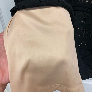Photos don’t do this dress justice. Has a nude slip u underneath that snaps in at shoulders. Measures 18-1/2” pit to pit and is 37” long.