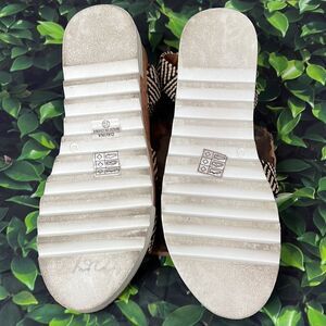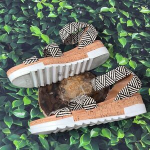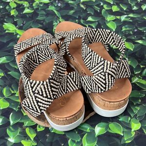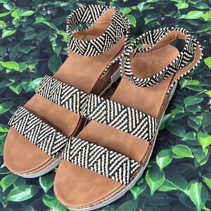 Catherine brand cream and black, weave platform sandals with ankle strap excellent used condition. No damage strap is comfortable and stretchy.