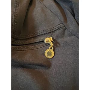 Excellent used condition. Free of snags, tears, rips or stains! Beautiful medium weight, with slight stretch, track jacket. Has many pockets with gold zipper details. Mannequin is a U.S. size 6 - definitely room to go up to size 10-12 in my opinion.