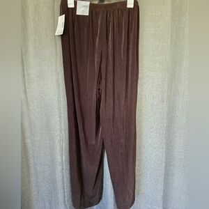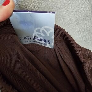Catherine's 0X Ribbed Wide Leg Trouser Pants Brown Elastic Waist